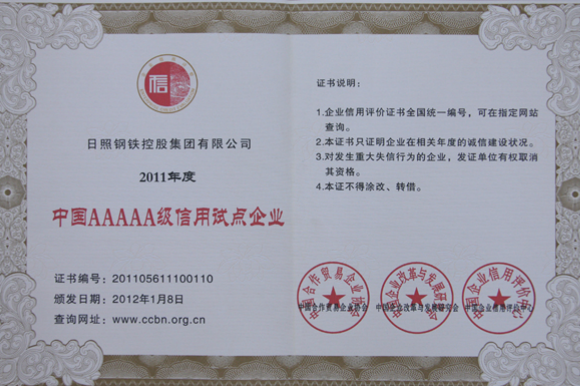 2011年度中国AAAAA级信用试点企业
