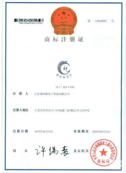 商标注册证 发布时间: 2017-07-04 18:10:16 发布网站: 中国电线电缆招标网