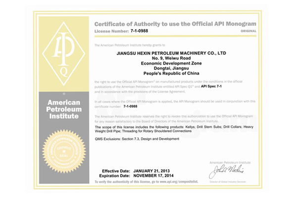 | 销售单位: 江苏和信石油机械有限公司 |