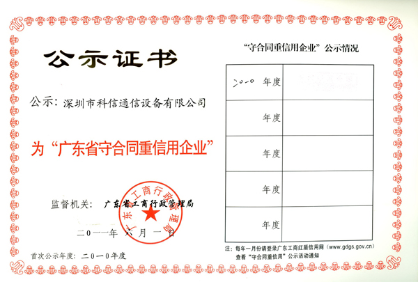 | 销售单位: 深圳市科信通信技术股份有限公司 |