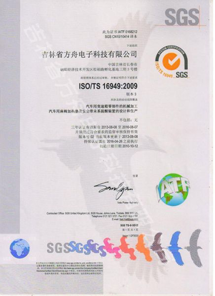 产品名称: ISOTS16949证书 |
