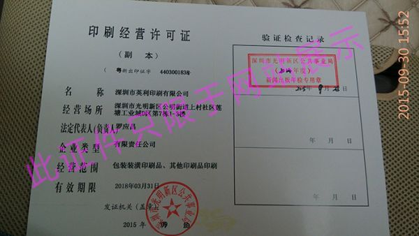 | 深圳市英利印刷有限公司 |