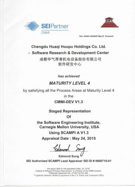 产品名称: CMMI 4级认证证书 |