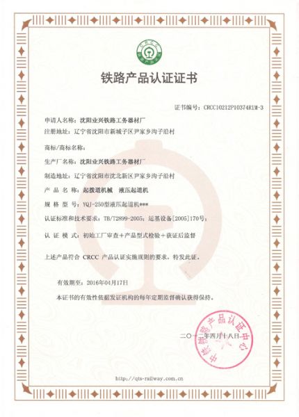 产品名称: 铁路产品认证证书9 |